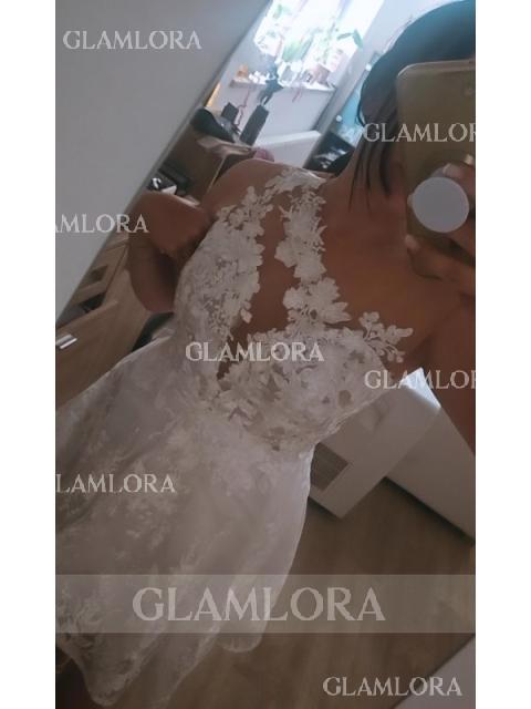 Note:The dress does not include any accessories in the picture, such as wraps/jackets, gloves, veil, handbag, etc. The tulle matches the model's skin tone and ships by default. If you want to change the tulle color or have questions about it, you may choose to Chat now or Email us.