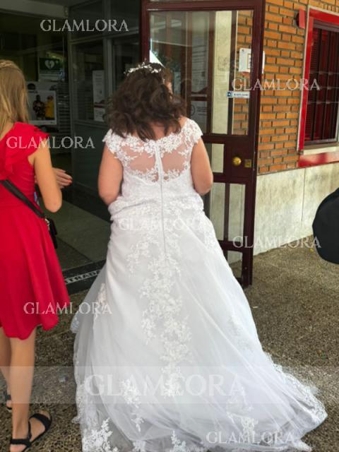 • A-line Princess Scoop Sleeveless Sweep Train Perfect Tulle Wedding Dress With Lace