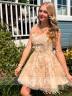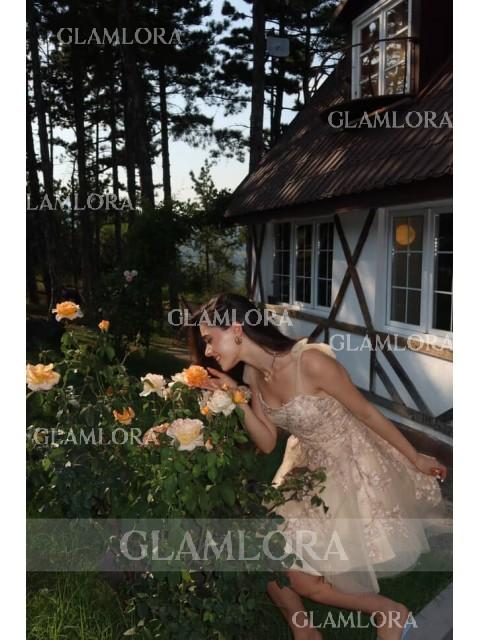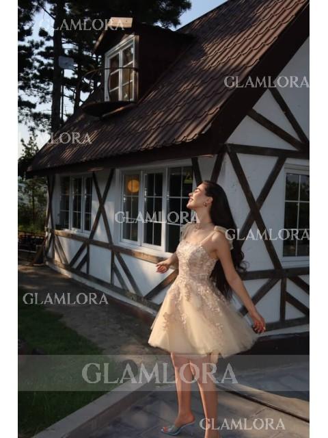 The Ball-Gown Straps Sleeveless Appliques Lace Short/Mini Tulle Dress is a charming and exquisite choice for special occasions. Featuring a voluminous ball-gown silhouette with delicate straps and a sleeveless design, this dress exudes a fairytale-like elegance. The intricate lace appliques add a touch of sophistication and detail to the bodice, while the tulle fabric enhances the dress's romantic and ethereal appeal. The short/mini length provides a playful and youthful vibe, perfect for proms, parties, or other celebratory events. This dress ensures the wearer feels like a princess, making a memorable statement throughout the occasion.
