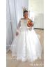 Ball-Gown Princess Off-the-Shoulder Long Sleeves Cathedral Train Ethereal Tulle Wedding Dress With Applique #GLHS0187