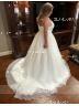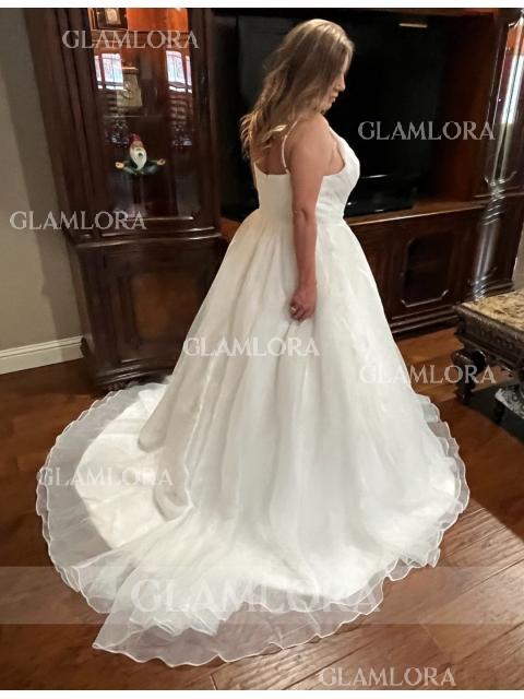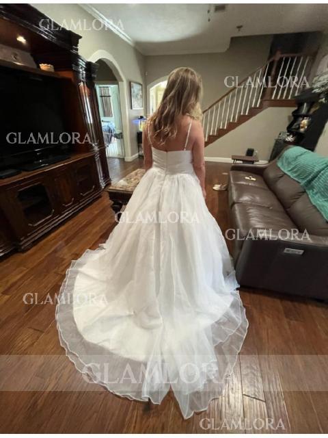 Chic A-line V-Neck Sleeveless Court Train Organza Wedding Dress #GLHS0155