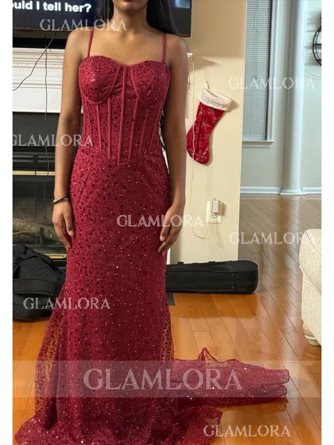 Sheath/Column Spaghetti Straps Sleeveless Sweep Train Sequins Scintillating Corset Dress CA$206.72 CA$507.28 (12)