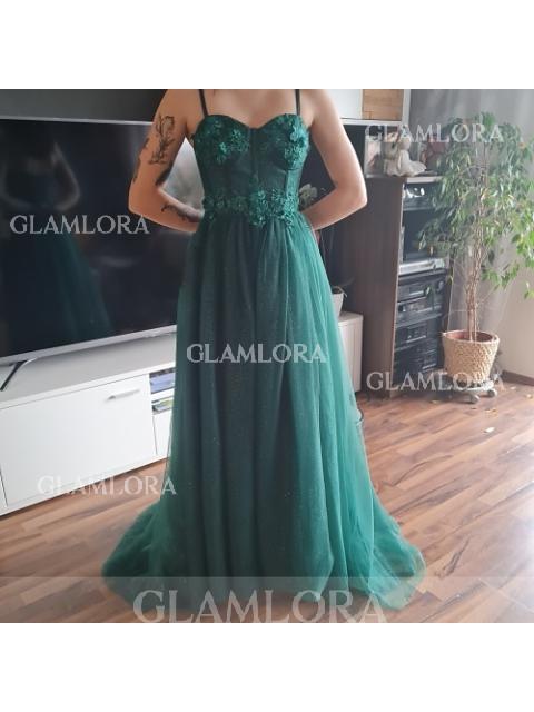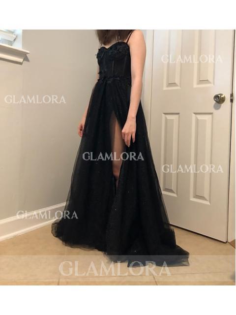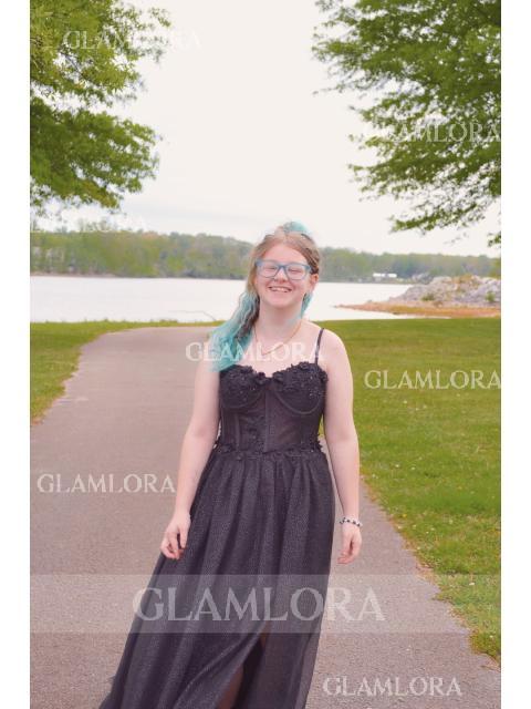• Flattering A-line Spaghetti Straps Sleeveless Sweep Train Corset Dress With Sequins