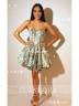 This A-line mini dress features a straight neckline and a fitted corset bodice, creating a sleek and flattering silhouette. Perfect for parties, special occasions, or evening events.