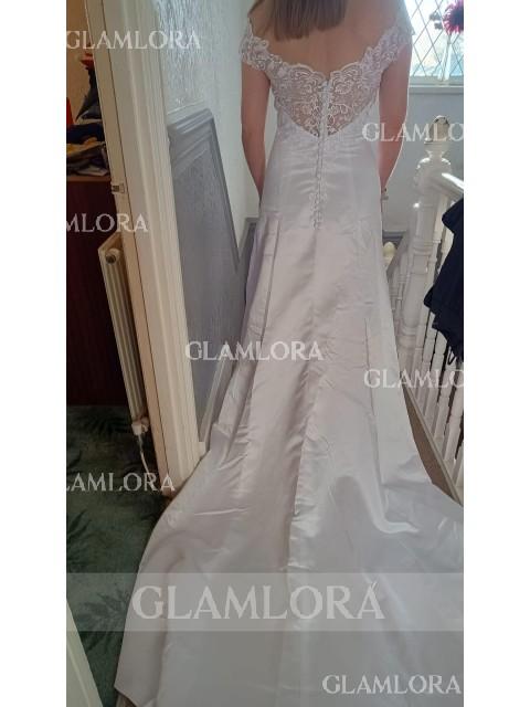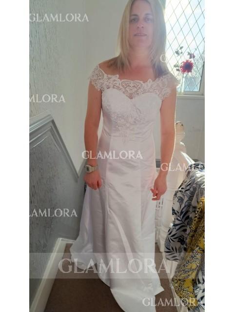 Luxurious A-line Scoop Chapel Train Satin Wedding Dress With Applique #GLY23W0021