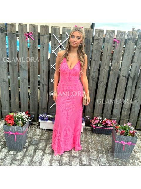 • Mesmerizing Sheath/Column V-Neck Sleeveless Sweep Train Dress