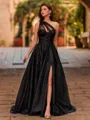 • Opulent A-line One-Shoulder Appliques Lace Sweep Train Tulle Corset Prom Dress