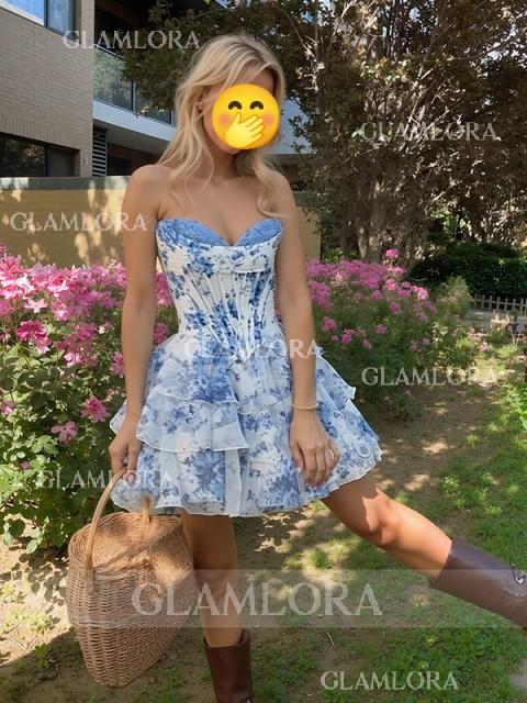 This A-line mini dress showcases a sweetheart neckline with cascading ruffles and a fitted corset bodice, creating a romantic and flattering silhouette.Crafted for special occasions, it's perfect for parties, proms, or elegant evenings.