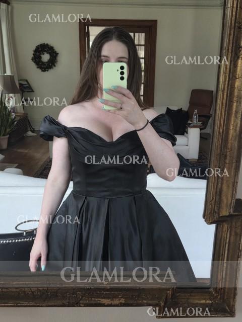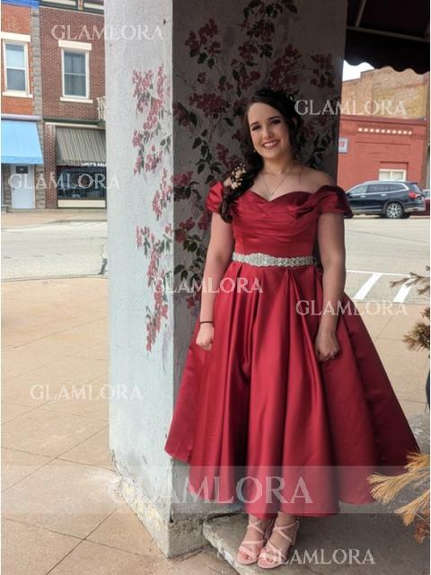 Perfect Ball-Gown Off-the-Shoulder Satin Tea-Length Dress With Pleated