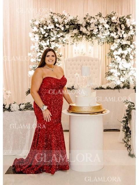 • Trumpet/Mermaid Sparkly Sweetheart Sleeveless Sweep Train Velvet Sequins Corset Dress
